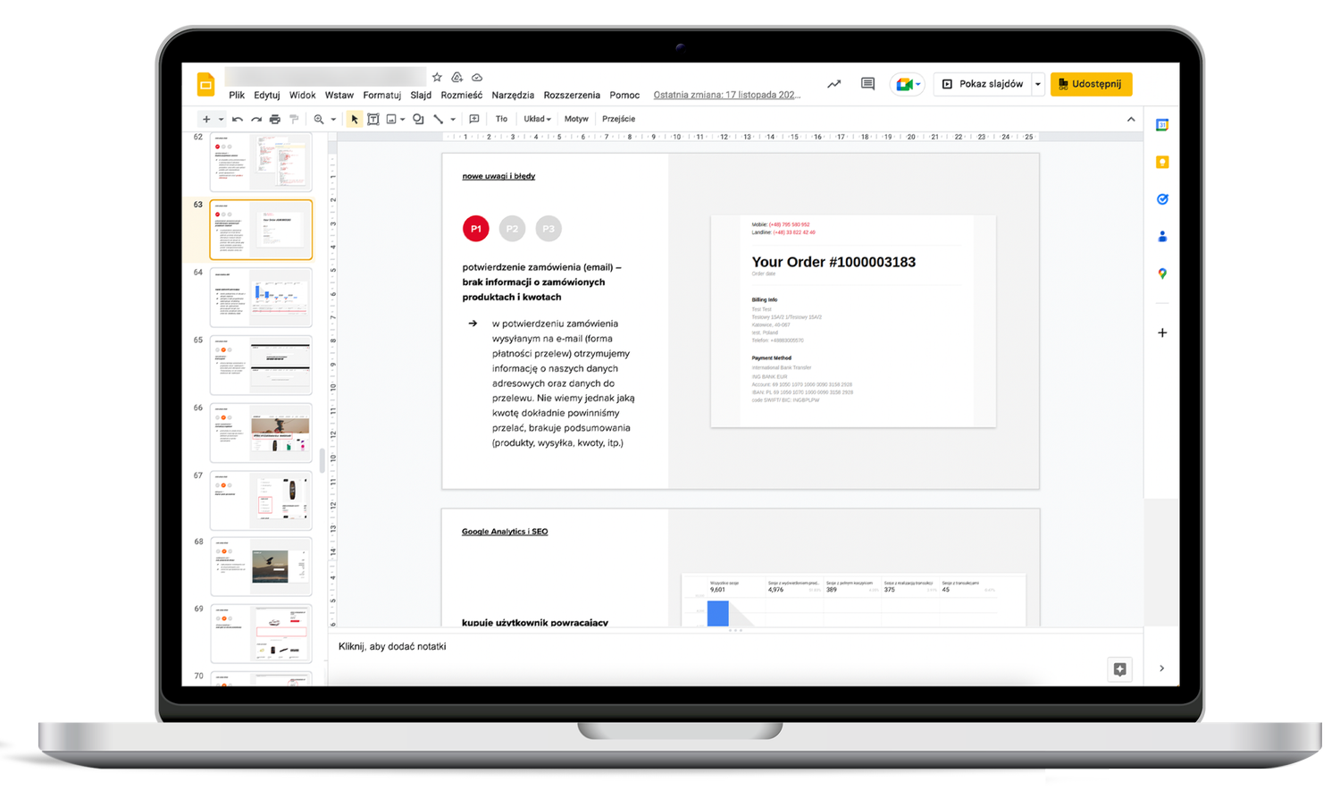 Po zakończeniu audytu otrzymasz od nas indywidualny raport, który dostarczy Ci głębokiego wglądu w funkcjonowanie Twojego sklepu internetowego. Dokument ten zawiera szczegółowe analizy i wnioski, dostosowane do specyfiki Twojego biznesu oraz wyzwań, przed którymi stoi.