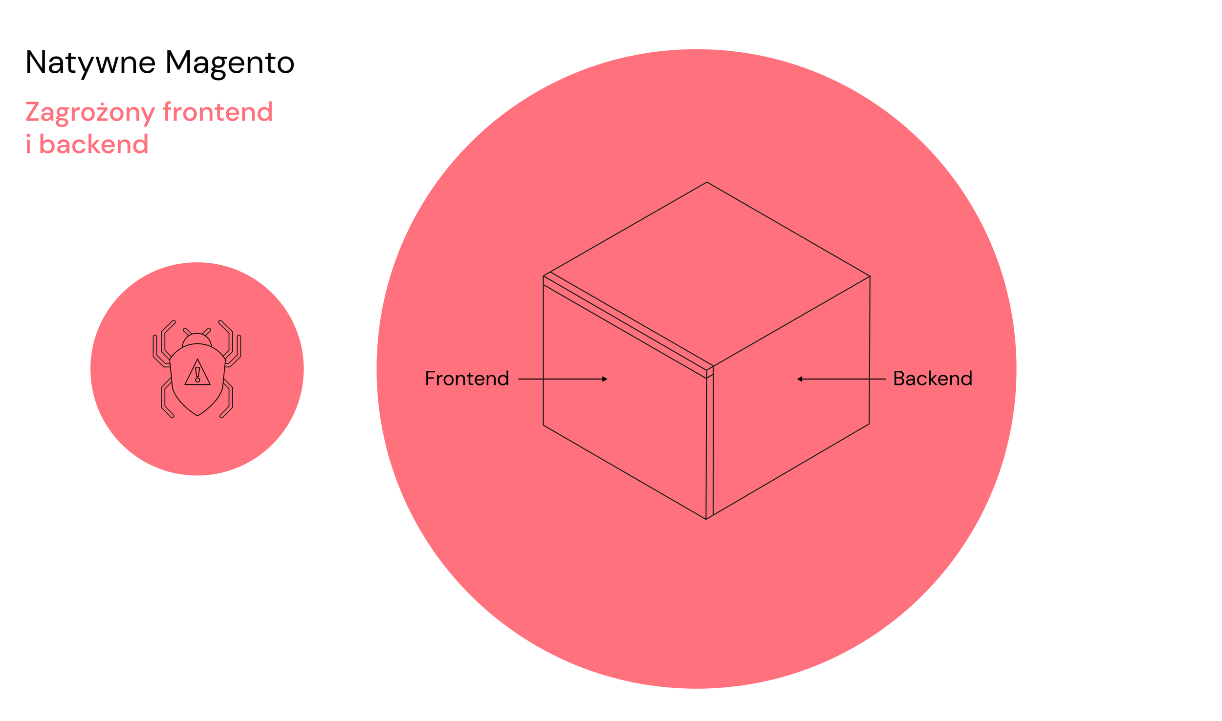 W natywnym Magento, interfejs użytkownika i backend są ściśle powiązane. To oznacza, że użytkownicy końcowi mają bezpośredni dostęp do aplikacji Magento, co może zwiększać ryzyko ataków.