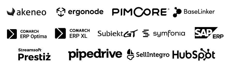 Przeprowadzamy także integracje sklepów z aplikacjami typu Comarch ERP Optima, Comarch ERP XL, Subiekt GT, Subiekt Nexo, Symfonia, SAP ERP czy Streamsoft Prestiż. Dzięki temu automatyzujemy procesy związane z zamówieniami, produktami i obsługą kontrahentów.
