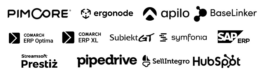 Przeprowadzamy także integracje sklepów z aplikacjami typu Comarch ERP Optima, Comarch ERP XL, Subiekt GT, Subiekt Nexo, Symfonia, SAP ERP czy Streamsoft Prestiż. Dzięki temu automatyzujemy procesy związane z zamówieniami, produktami i obsługą kontrahentów.