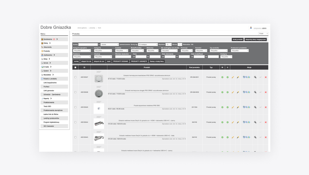 Dodatkowo zaimplementowaliśmy bazę produktową dostosowaną do obsługi wielu kanałów sprzedaży, której wdrożenie miało na celu ułatwienie zarządzania danymi produktowymi.