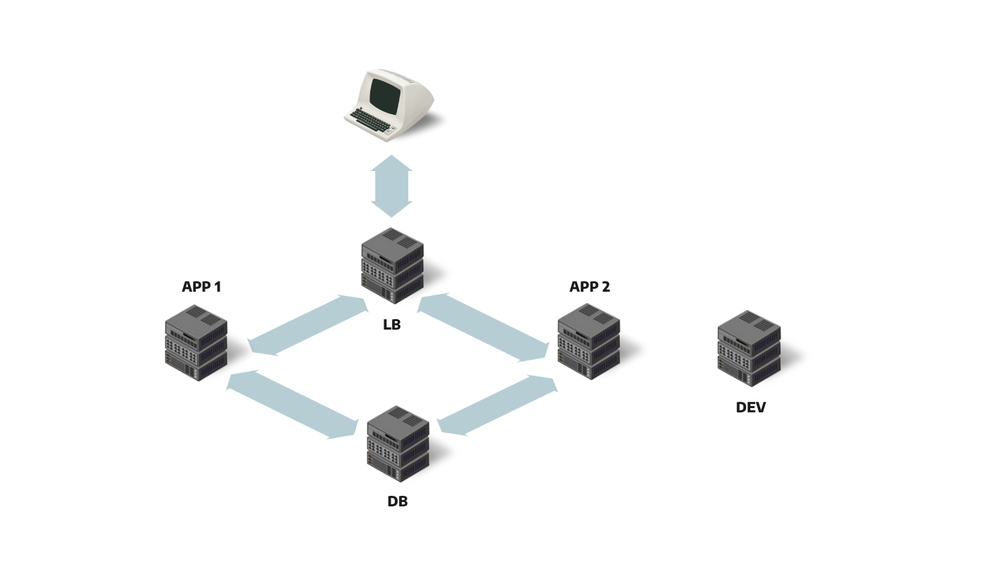 Na serwerach aplikacji uruchomione są programy wykonujące wszystkie obliczenia. Realizowany jest zapis i odczyt z bazy danych (baza danych stoi na serwerze DB) oraz generowana jest odpowiedź, jaką widzi w przeglądarce użytkownik. Odpowiedź zostaje przekazana do serwera LB, który zwraca ją do przeglądarki, a ta następnie wyświetla ją użytkownikowi. Na serwerze DEV znajdują się wersje deweloperskie sklepów, backup plików aplikacji oraz bazy danych.