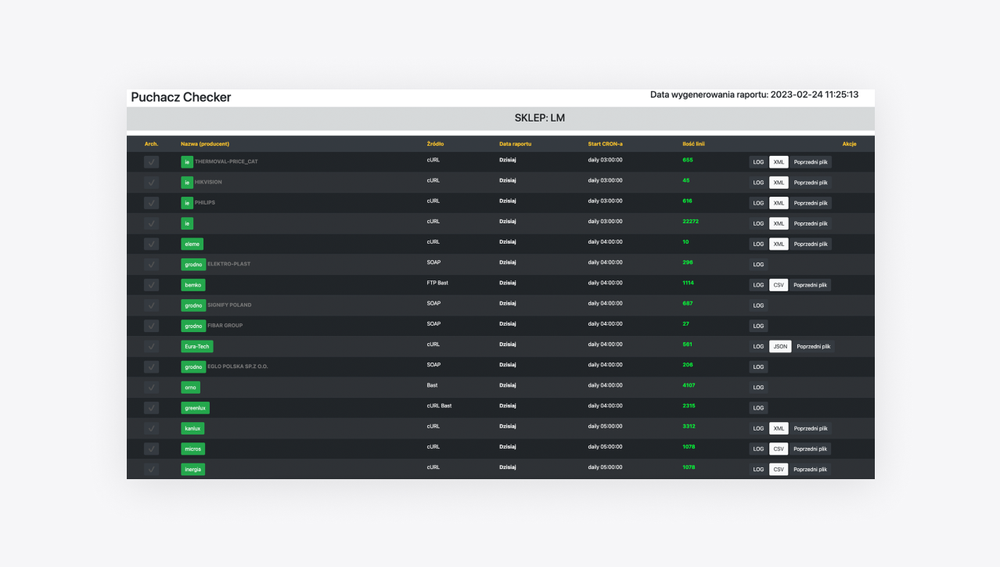 Puchacz – system do automatycznej integracji z dostawcami, pobiera ceny i stany magazynowe oraz aktualizuje je, a także informuje gdy zmiana ceny jest stosunkowo duża i wymaga interwencji użytkownika.