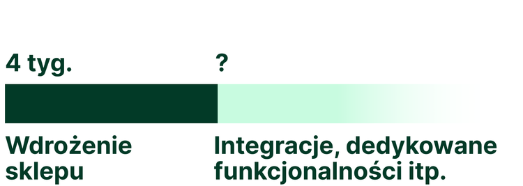 Wdrożenie bazowej wersji sklepu umożliwiającej uruchomienie sprzedaży trwa 4 tygodnie. Zwracamy jednak uwagę, że opcjonalne integracje (np. z systemem ERP), czy rozbudowa sklepu o dedykowane funkcjonalności wymaga estymacji.